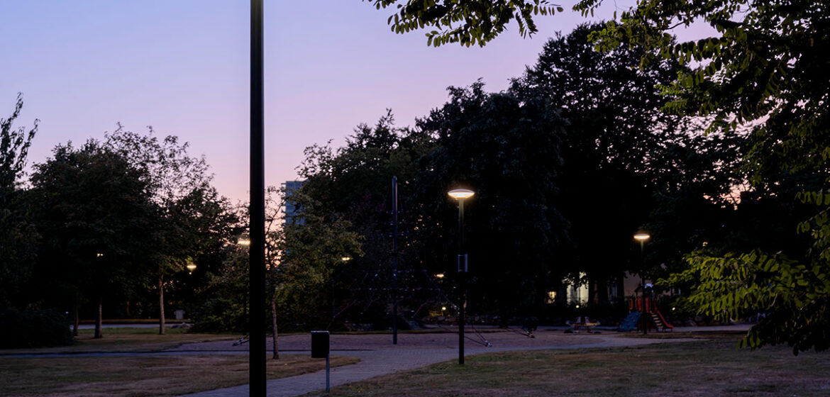 Develcon projekterad ytterbelysning av Folkparken vid Sundspärlan åt Fastighetsförvaltningen i Helsingborg. Foto av Werner Nystrand och armaturer av Fox Belysning. Seneco CityGrid belysningstyrning i en del av framtidens belysning.