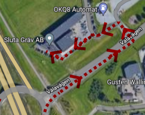 OBS! Sväng in söderifrån från Österleden via Välavägen. Från norr är grinden låst.